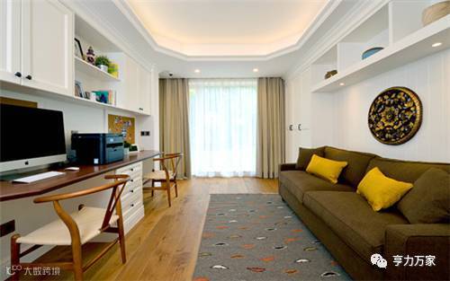 独立的休闲区可用于阅读或家庭办公,百无聊赖时独处消遣时光,平复心绪欲认认真真读几本喜欢的书籍,亦或专心地投入到工作状态,这里可以成为另一个选择。
