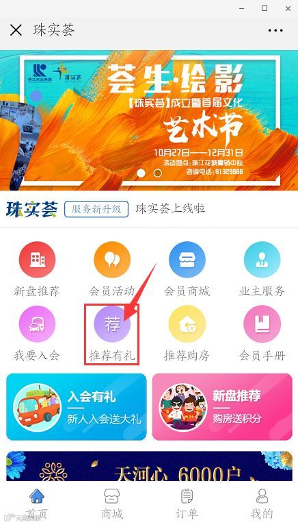 点击首页的“推荐有礼”