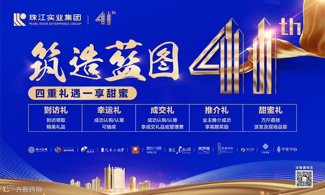 为回馈广大客户的支持与喜爱,珠江实业集团成立41周年庆,推出“四重礼遇,一享甜蜜”活动,回馈新老客户!珠江花城、品实·云湖花城、珠江·鹅潭湾、美林湖、颐德湾尚、佳滨苑、广梅·珠江花城、珠江嘉园、珠江·颐德公馆、珠江·东方明珠、智联·汽车小镇、合肥·中侨中心,12盘联袂礼献,共享发展成果,向广大市民送上最真诚的致谢!