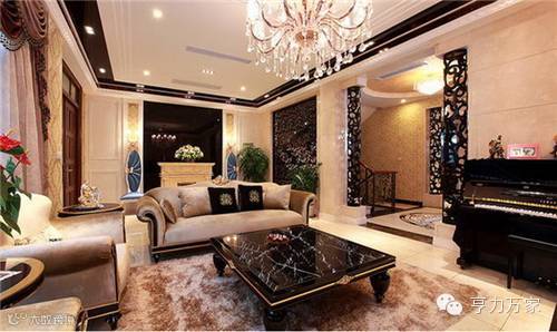 美式风情的客厅一般都是简洁明快的色调,同时装修较其它空间要更明快光鲜,通常使用大量的石材和木饰面装饰;业主喜欢有历史感的东西,这不仅反映在软装摆件上对仿古艺术品的喜爱,同时也反映在装修上对各种仿古墙地砖、石材的偏爱和对各种仿旧工艺的追求上。
