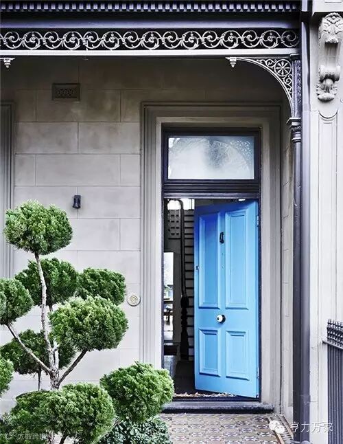 整个空间以这扇蓝色的大门最为惹眼。它是我们探访这所优雅住宅最关键的所在。跳耀性的蓝色,吸引一切的目光。再融合了维多利亚式的精致结构,舒适、华丽,厚重、突出,宣扬着个性又展示着身份的象征。