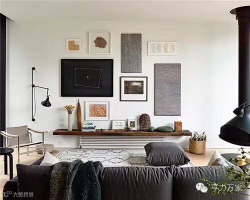 将复古与现代相结合,并且利用多种装饰物品来衬托整个家的精致。整个落地玻璃阳台让室内光线充足,黑色暖炉又与整个客厅的装饰物和家具的颜色相融,呈现一股暖洋洋的感觉。