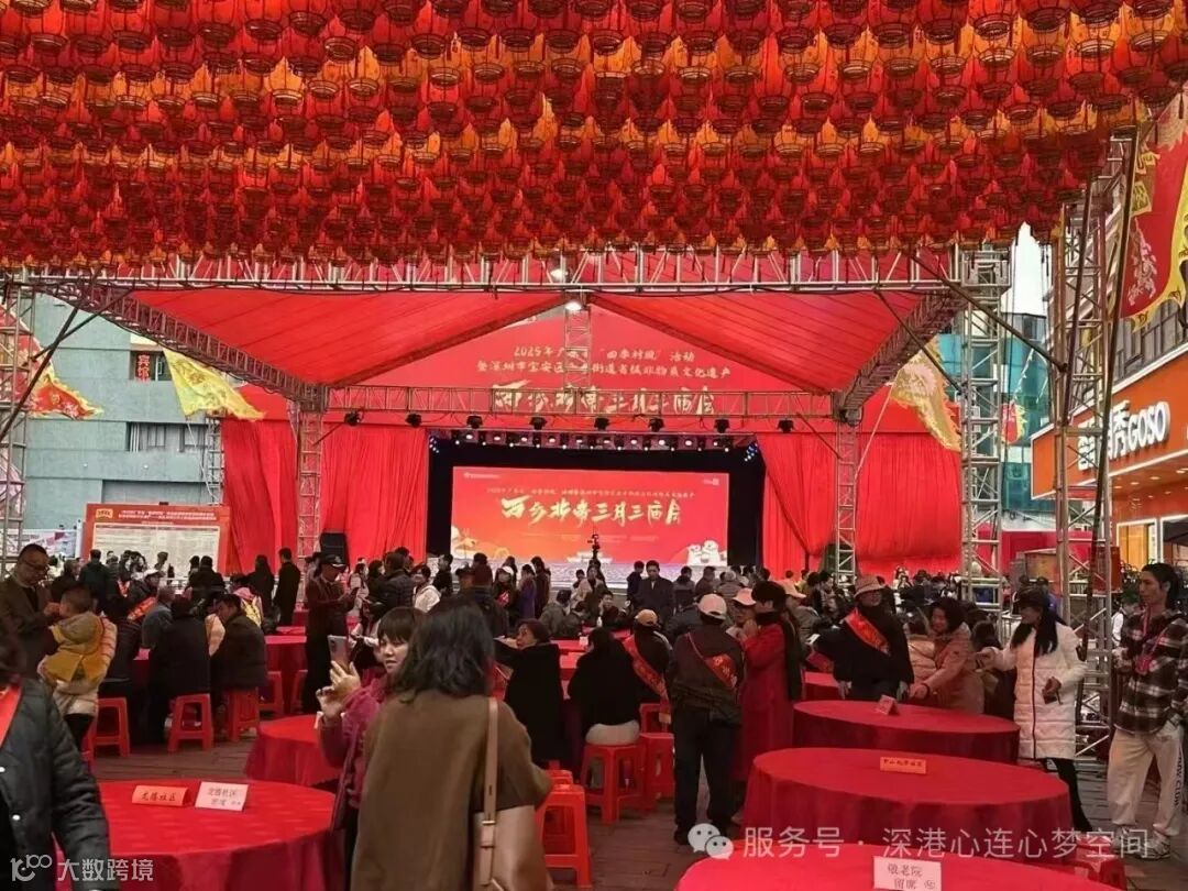 3月26日,2025年宝安区西乡北帝誕三月三庙会于深圳宝安区西乡街道盛大启幕。作为粤港澳大湾区最具影响力的非遗文化盛会之一,本届庙会以“传承与创新”为主题,吸引了上百支巡游队伍及超万名市民参与。深港心连心•梦空间作为重要参展单位,携香港非遗文化学会精品亮相,为这场民俗盛宴注入深港融合的独特魅力。