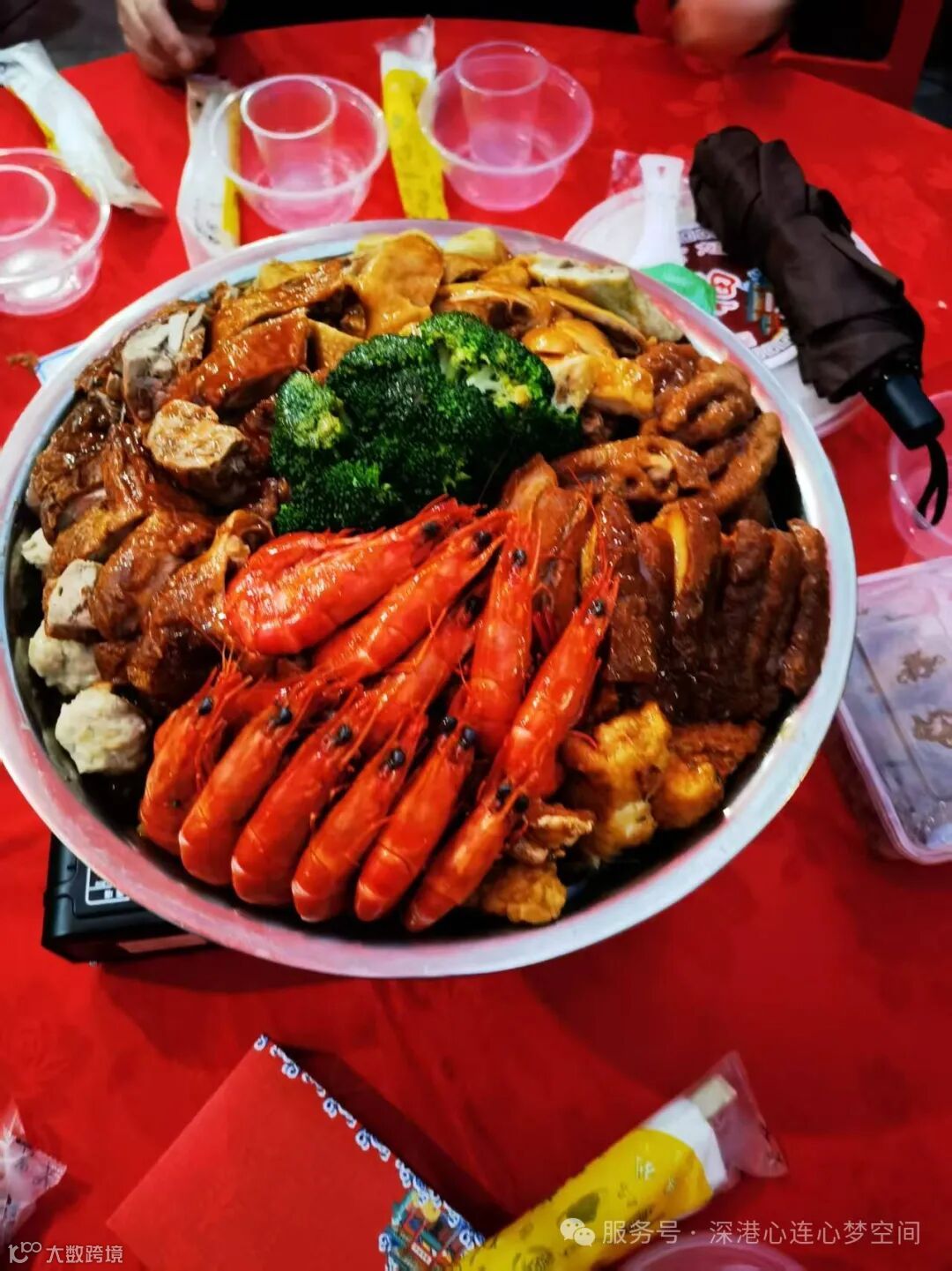 最后西乡北帝誕三月三庙会当天迎来又一“例牌”活动————千岁盆菜宴热闹开席。1300多张圆桌铺排而开,10多种食材盆中“相逢”,万人欢聚共赴盆菜宴。据西乡北帝古庙理事黄正基介绍,1997年,西乡北帝理事会成员考虑到老年群体的参加意愿,增设“千岁大盆宴”环节,一围盆菜坐10位,每位都是耄耋老人,加起来足有近千岁,于是便以此取名——西乡千岁盆菜宴,寓意吉祥康瑞。尽管如今盆菜宴再也不是老人的专属,但是西乡“千岁盆菜宴”的名字一直沿用至今。