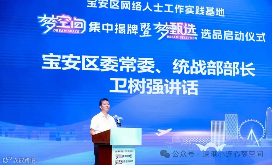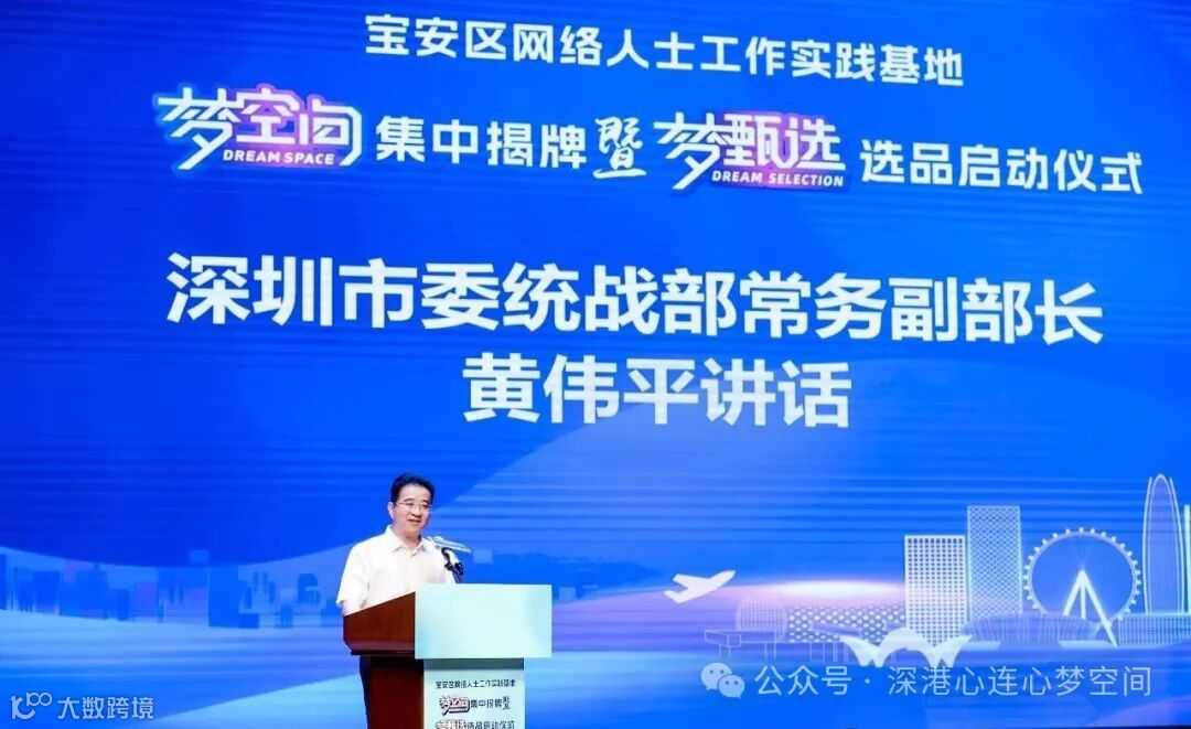 6月27日,宝安区网络人士工作实践基地“梦空间”集中揭牌暨“梦甄选”选品启动仪式顺利举行。活动现场揭牌了来自10个街道的“梦空间”,正式实现了“梦空间”在10个街道“全覆盖”;发布了宝安“梦空间”特色地图,浓缩了各“梦空间”的产业特点和合作信息;公布了首批“梦天团”20名网络“大V”;出台了《宝安“梦甄选”千品计划方案》,促进“好品”与“大V”双向奔赴;还促成了“梦空间”与引进企业签署合作意向书,预计年GMV将达到50亿元。深圳市委统战部常务副部长黄伟平,区委常委、统战部部长卫树强出席活动并讲话。