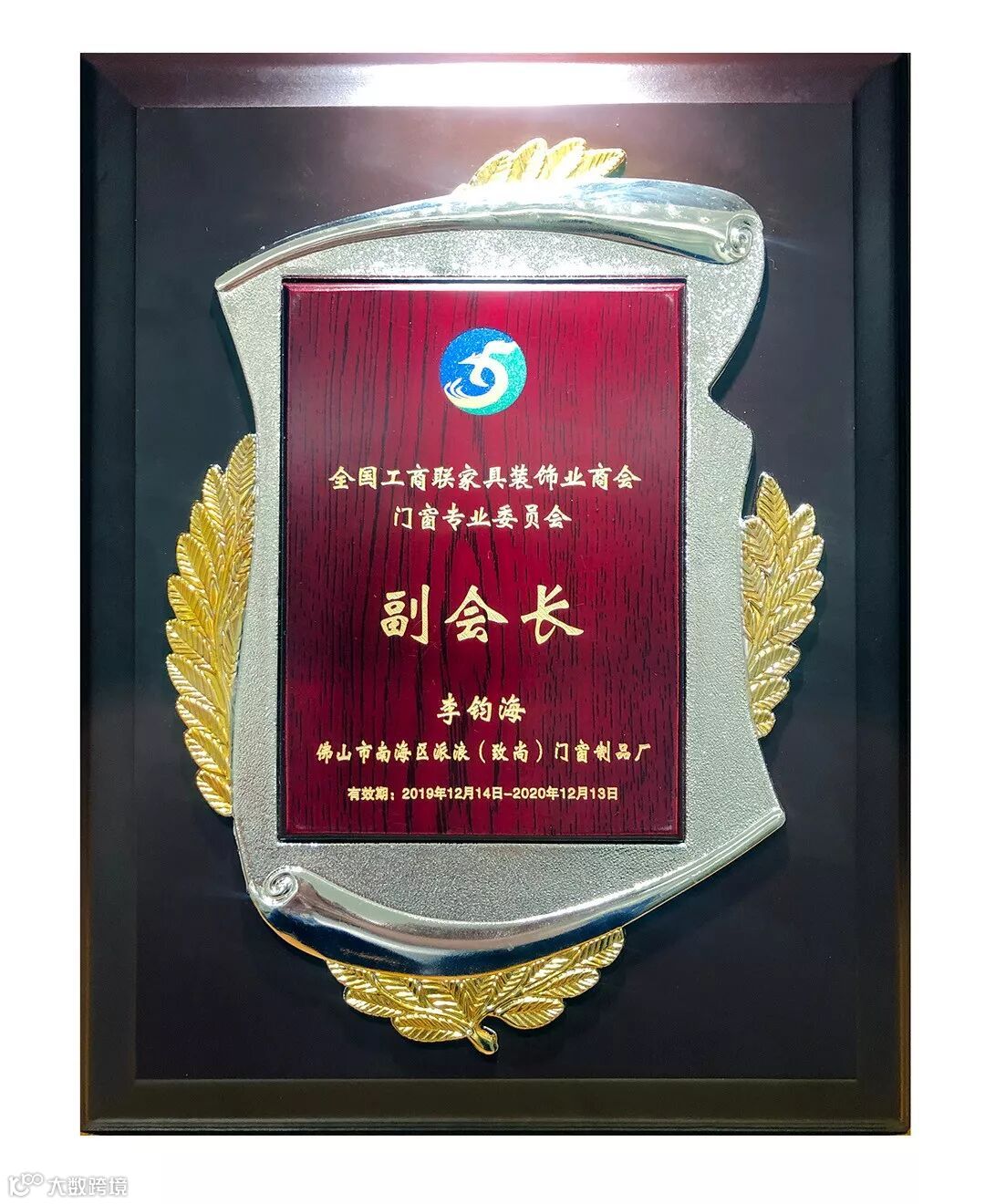 及当选“全国工商联家具装饰业商会门窗专业委员会副会长”