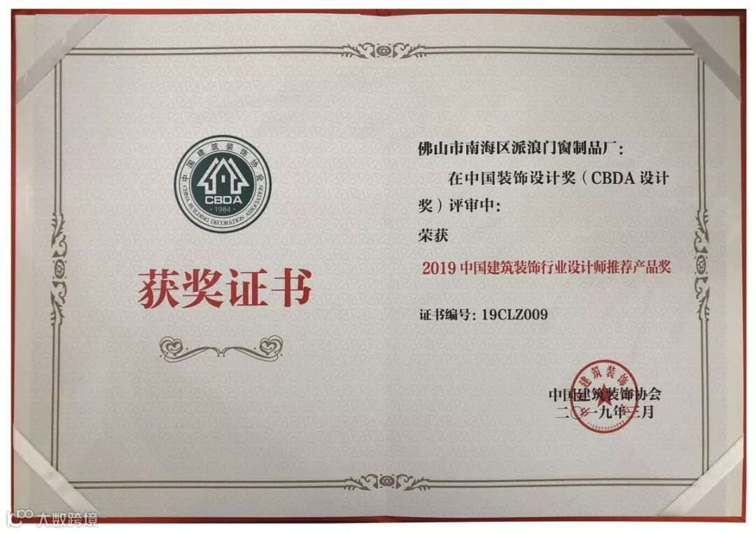 荣获“2019中国建筑装饰行业设计师推荐产品奖”