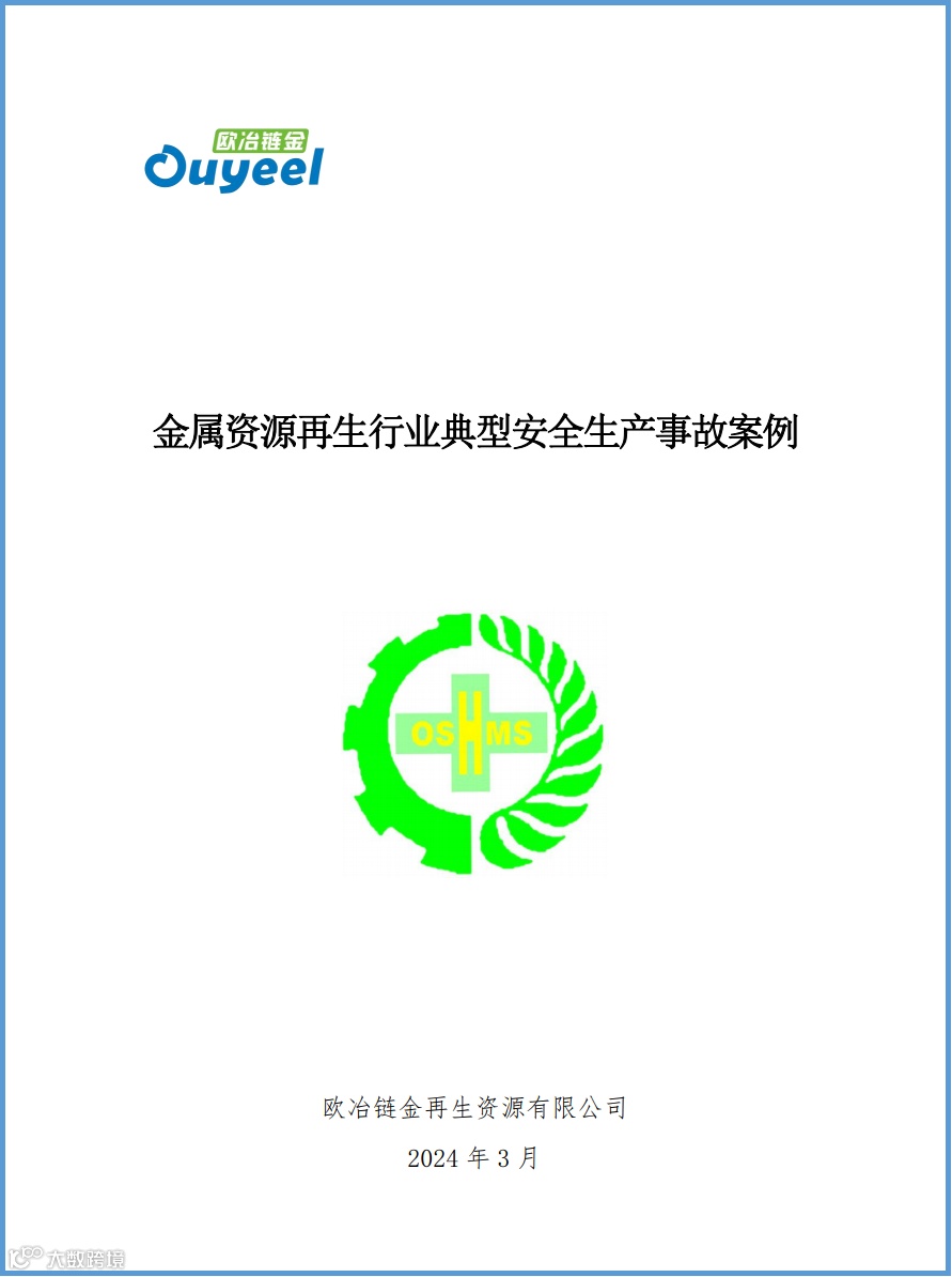 为认真贯彻落实安全生产治本攻坚三年行动计划,真正做到"一厂出事故,万厂受教育",近日,欧冶链金安全环保部、工会联合编印出台了《金属资源再生行业典型安全生产事故案例》。