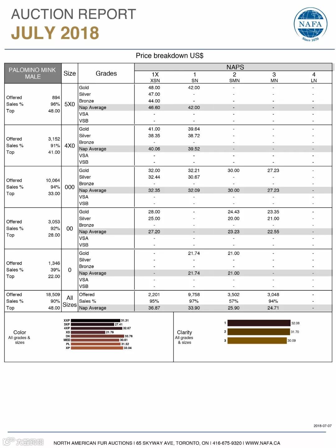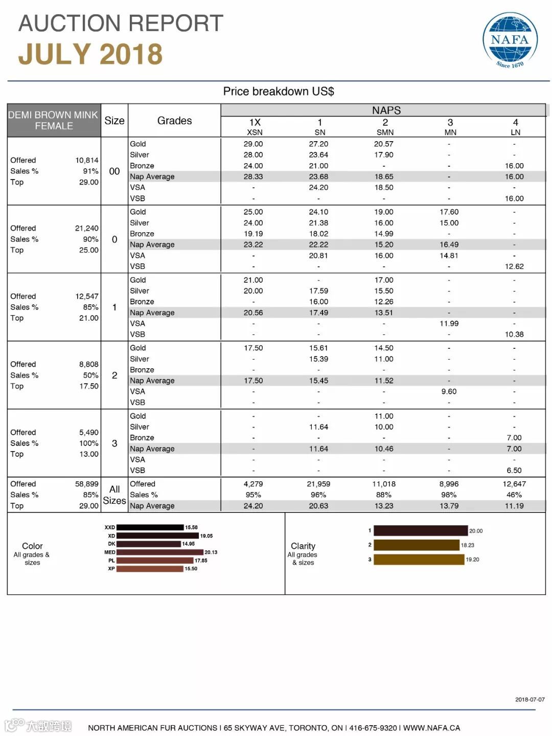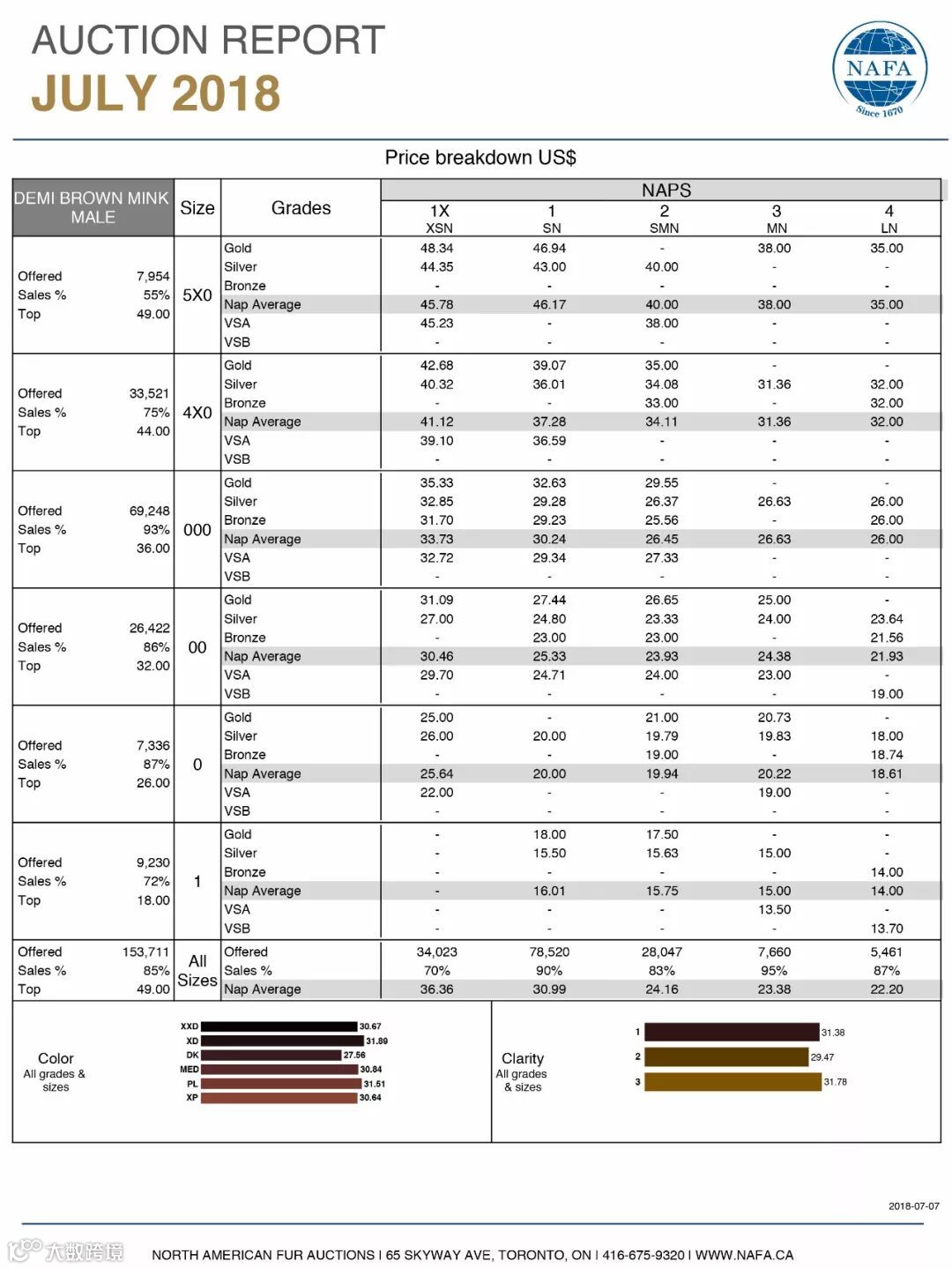 NAFA7月拍卖会明天继续进行,拍卖的皮张是银蓝、珍珠、白色、铁灰和蓝宝石水貂。