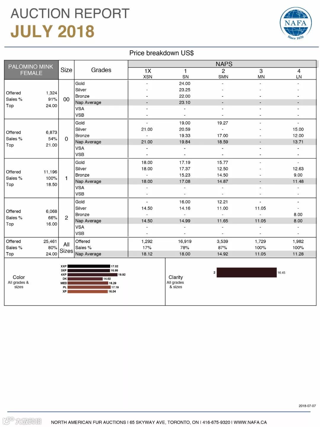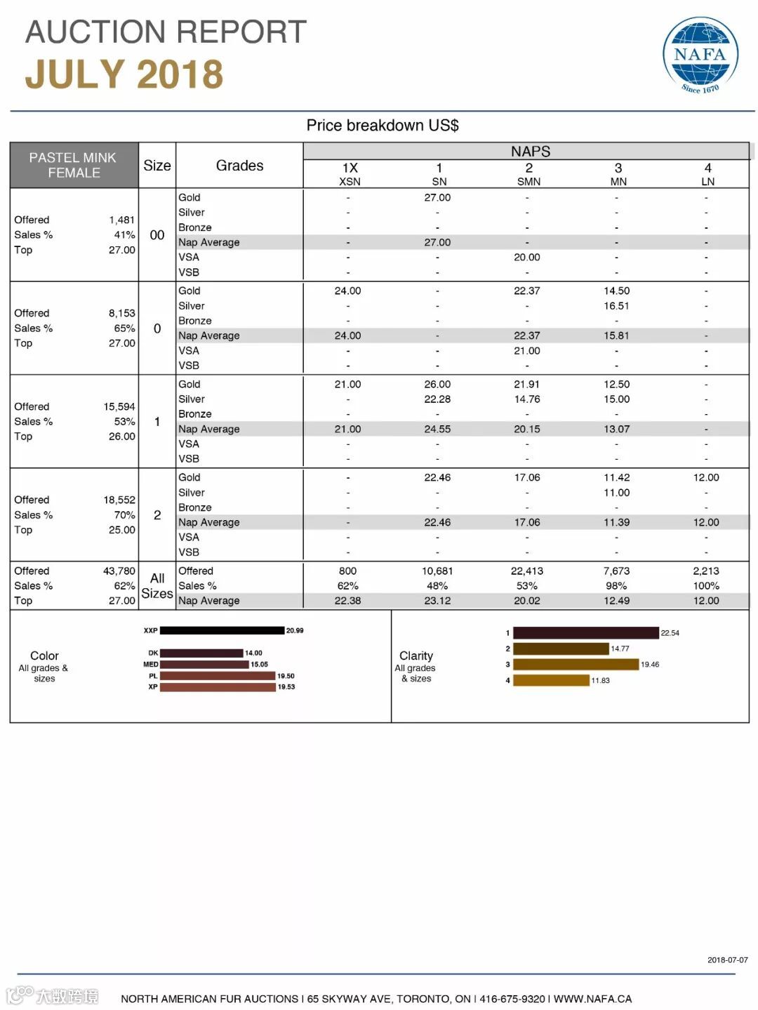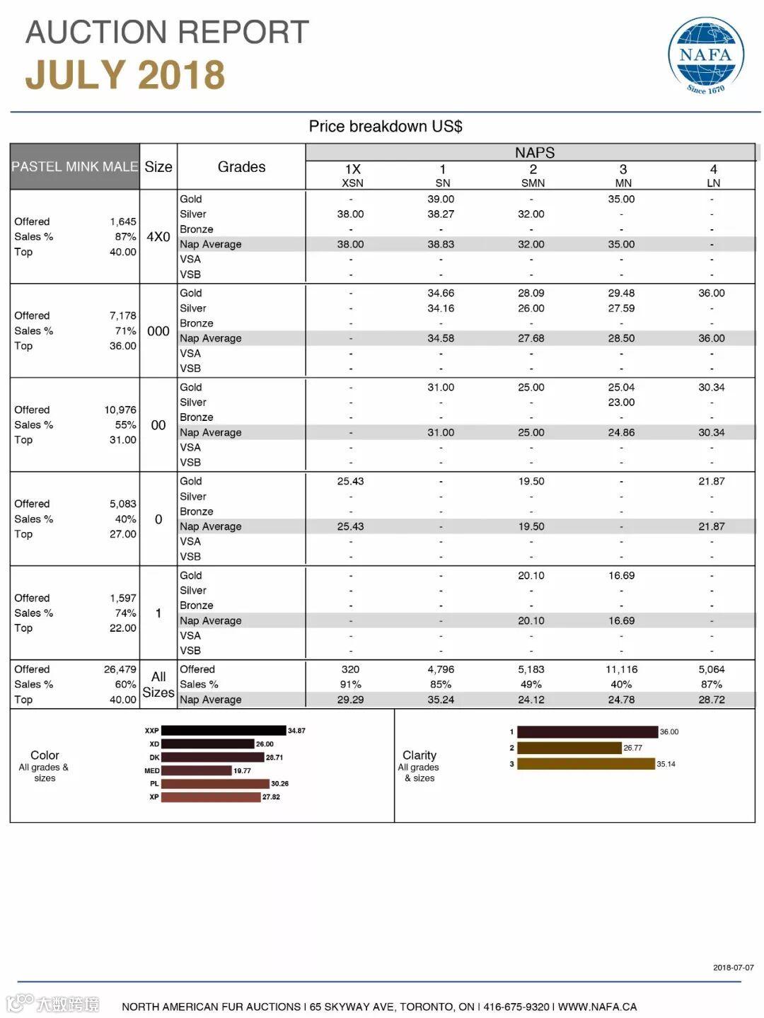 NAFA7月拍卖会明天继续进行,拍卖的皮张是银蓝、珍珠、白色、铁灰和蓝宝石水貂。