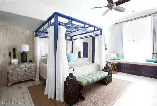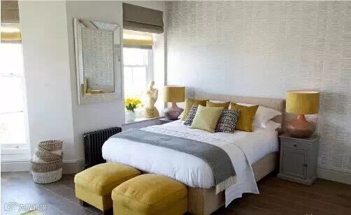 这是适合于较大卧室的摆放方法,可以根据床头后面墙角空地的大小在拜访一个储物柜。