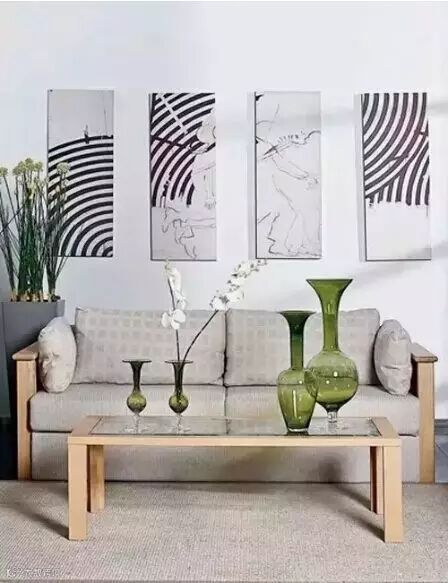 在沙发的体积很大或是两个长沙发摆在一起的情况下,矮茶几就是很好的选择,高度最好和沙发坐垫的位置持平。