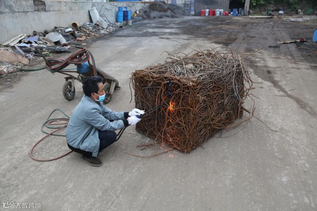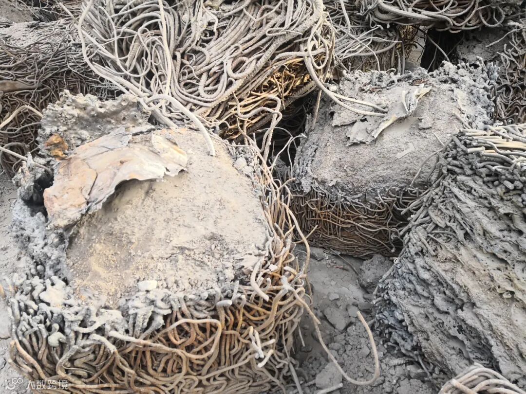 内部填充了渣土的钢筋压块