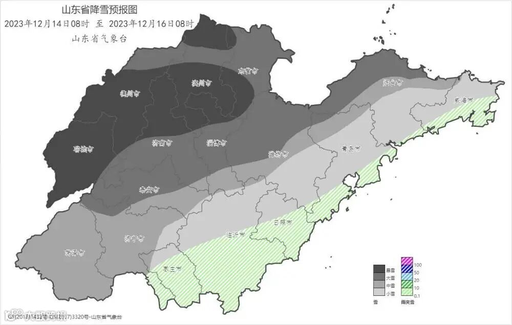 山东省气象台12月12日11时发布寒潮雨雪和持续低温预报,13—21日,山东省将出现寒潮雨雪和持续低温天气。
