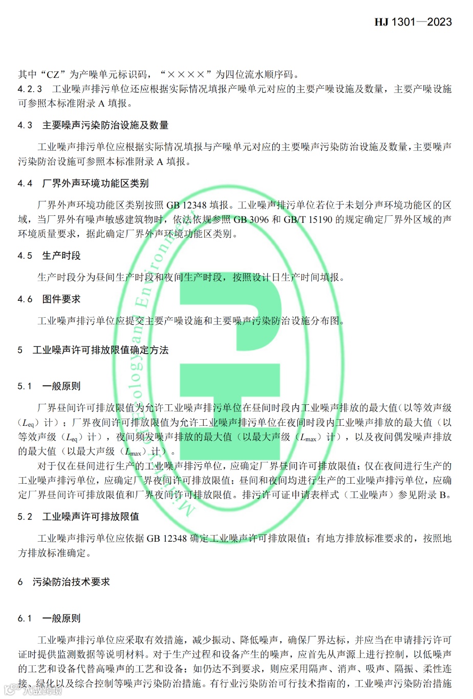 《排污许可证申请与核发技术规范 工业噪声》(HJ 1301-2023)
