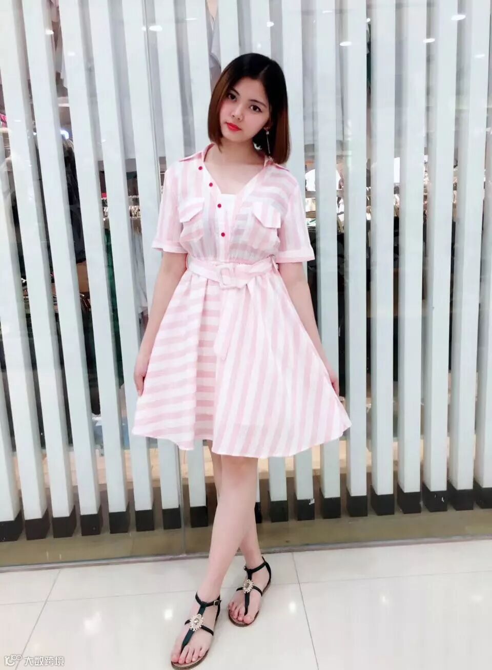 浅粉色衬衫裙,满满的少女感