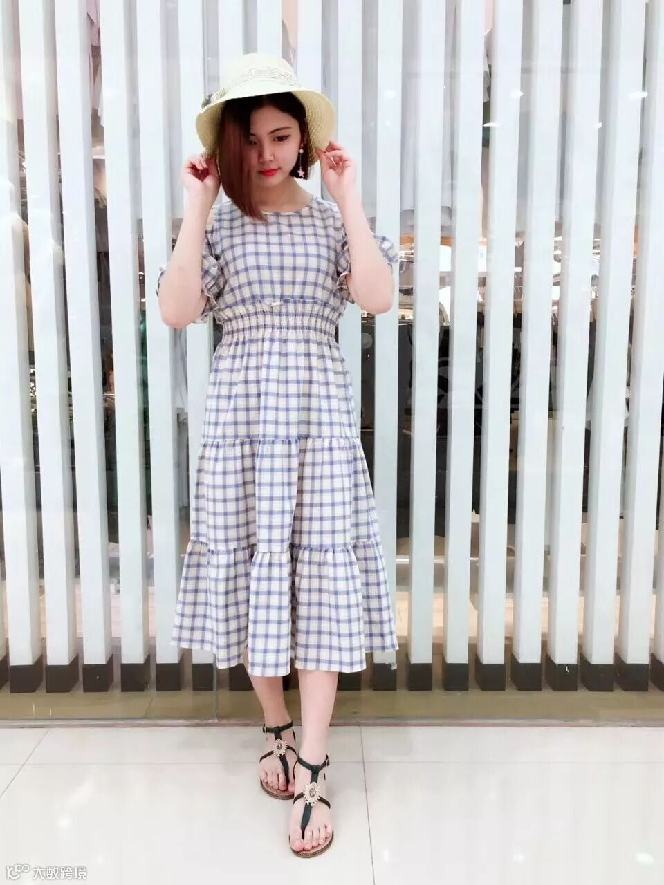 格子图案的中裙,浓浓的田园气息扑面而来