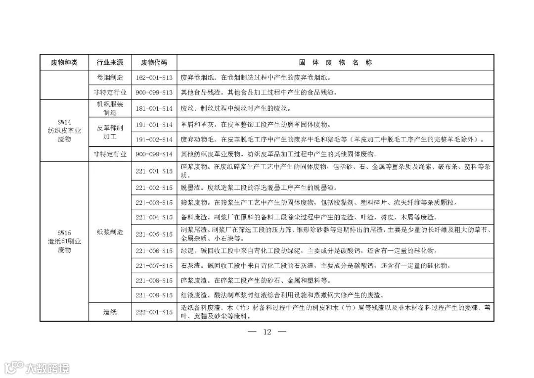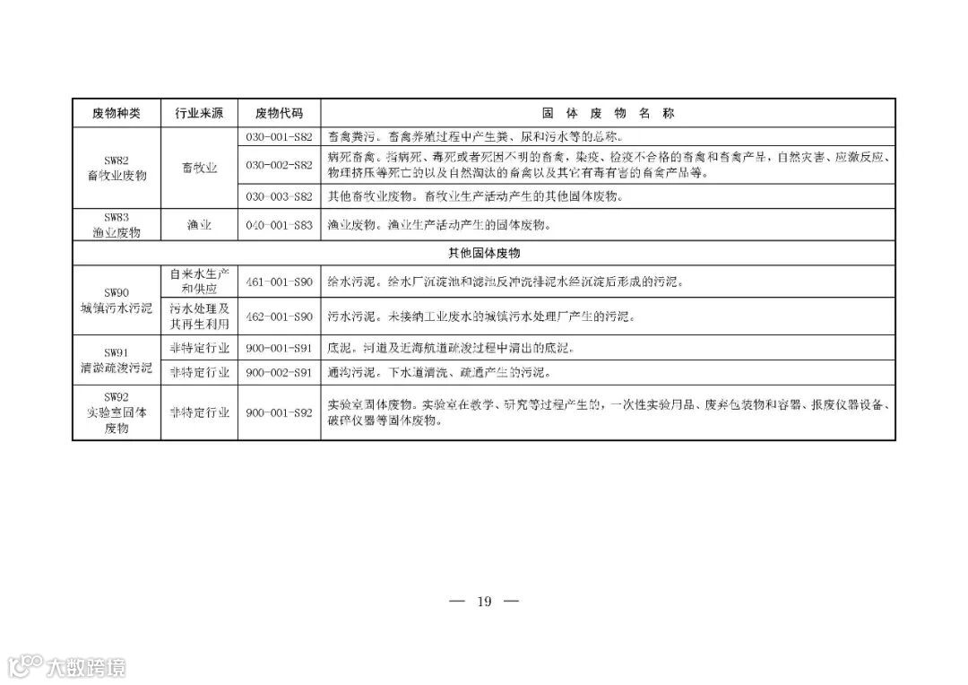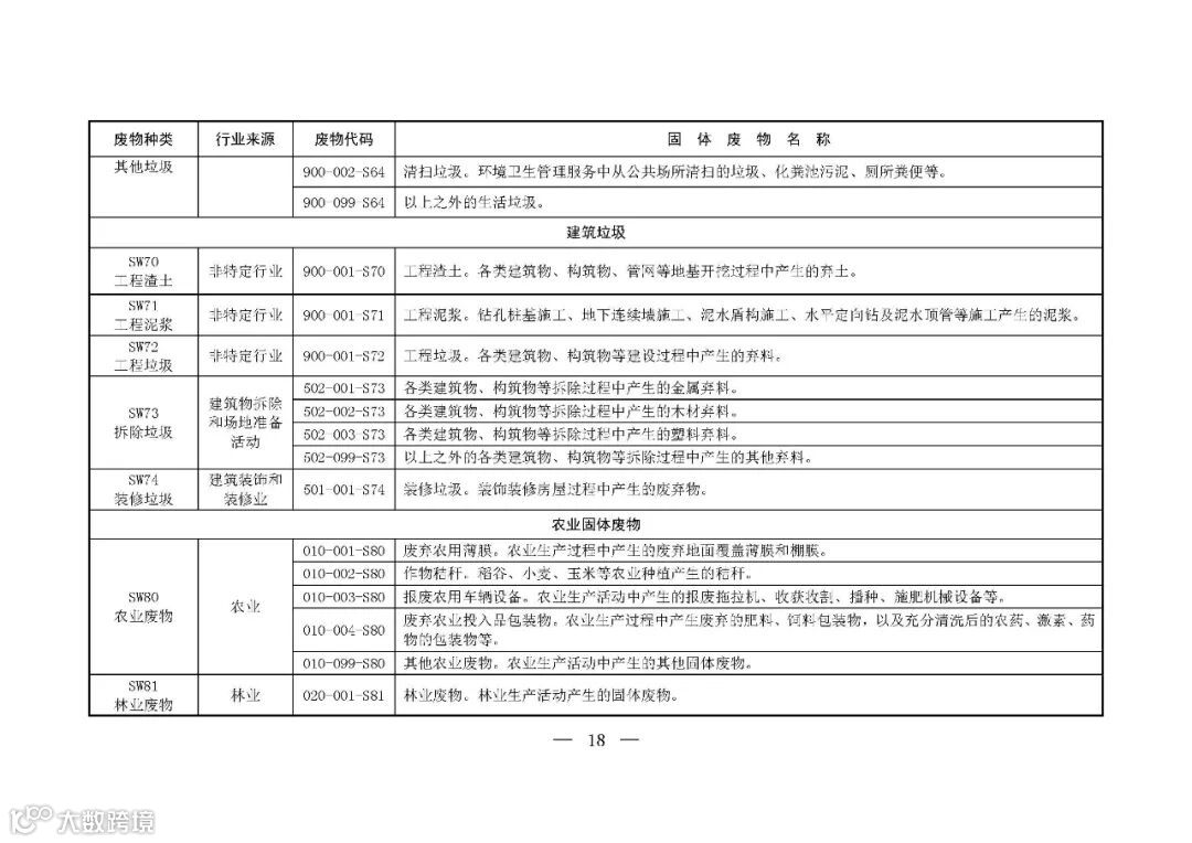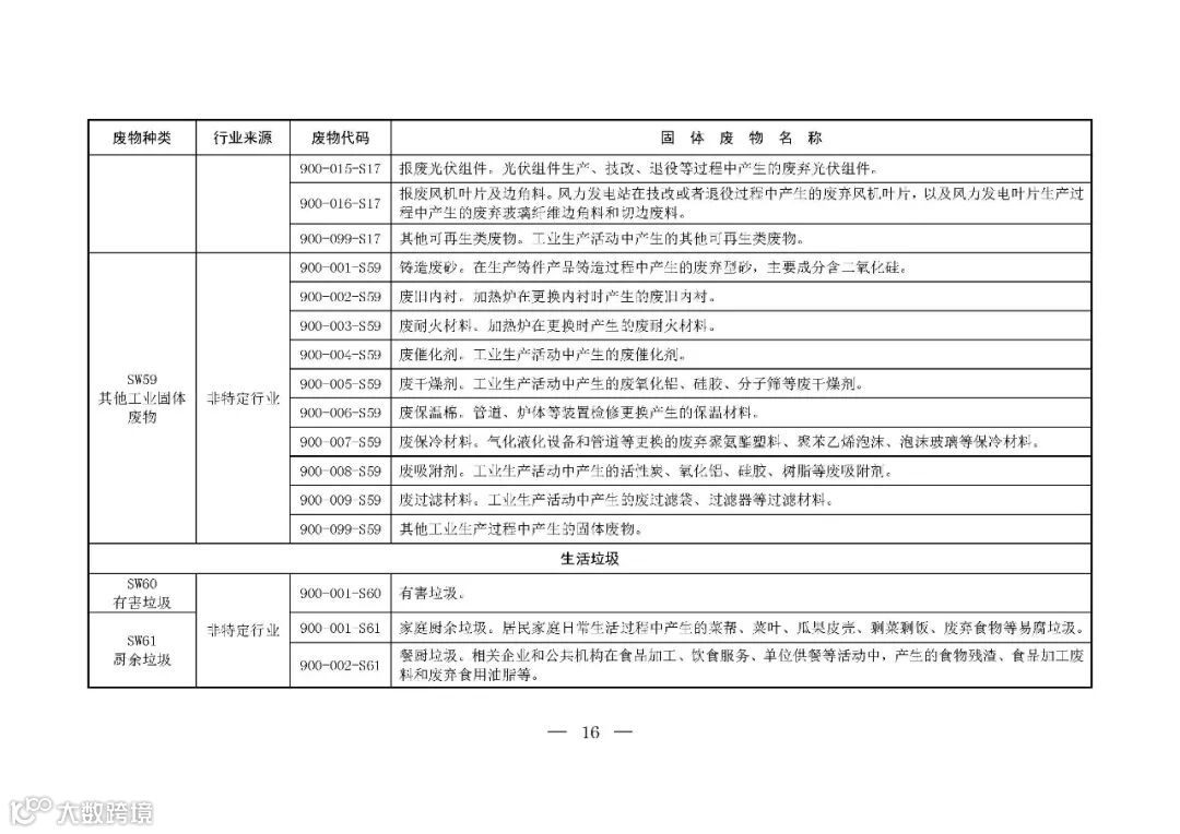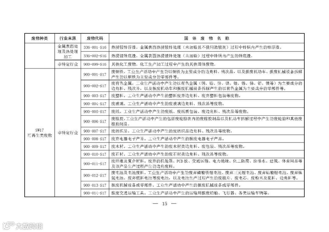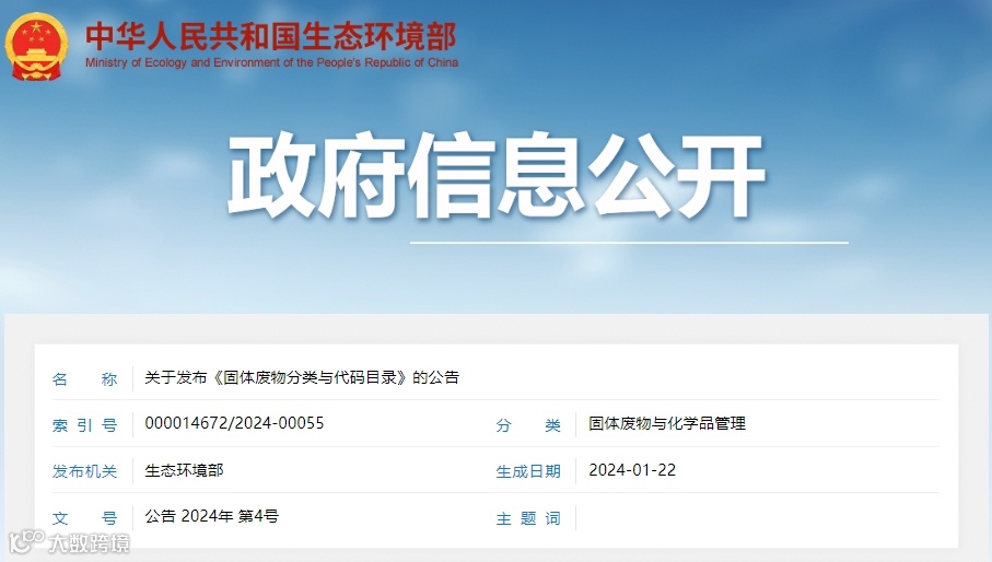 为推动落实《中华人民共和国固体废物污染环境防治法》关于固体废物转移管理、信息公开和工业固体废物管理台账、排污许可、环境统计等要求,提升固体废物管理规范化、精细化、信息化水平,生态环境部制定了《固体废物分类与代码目录》。现予以发布,自发布之日起施行。👇