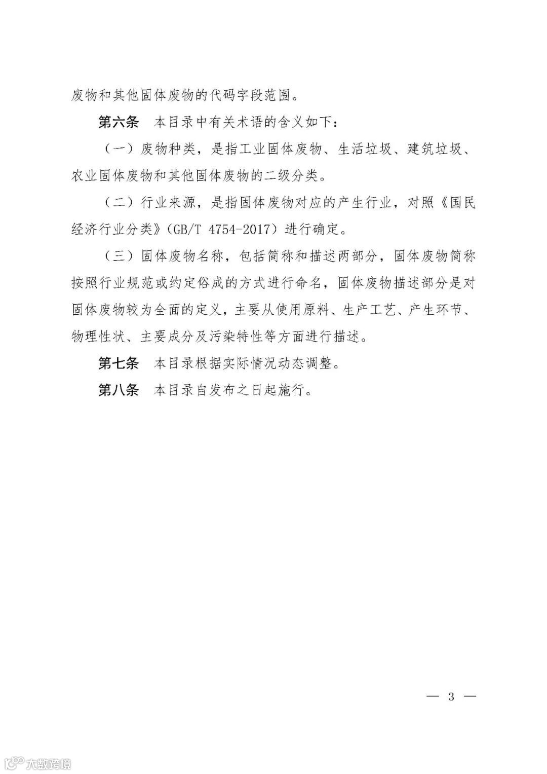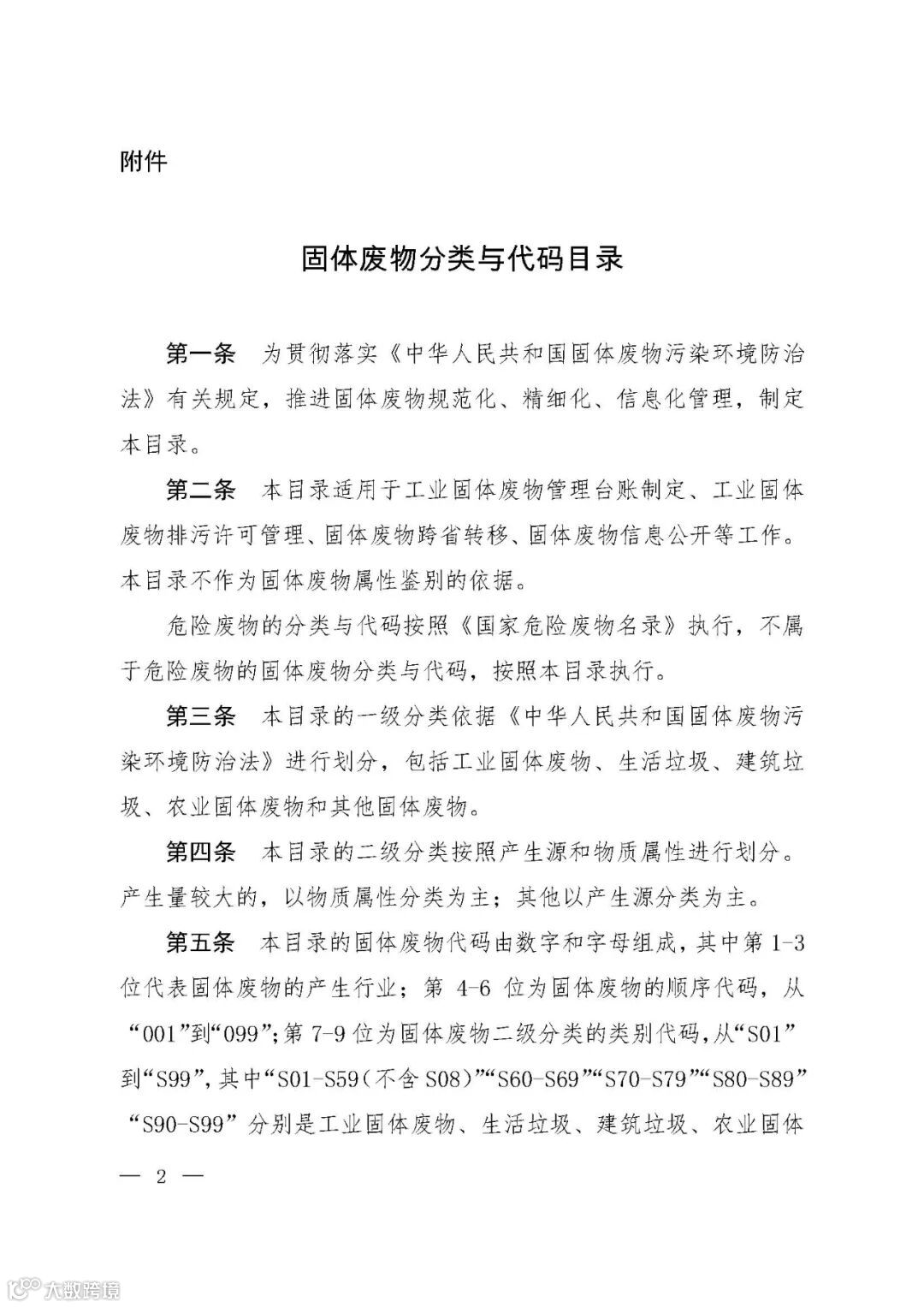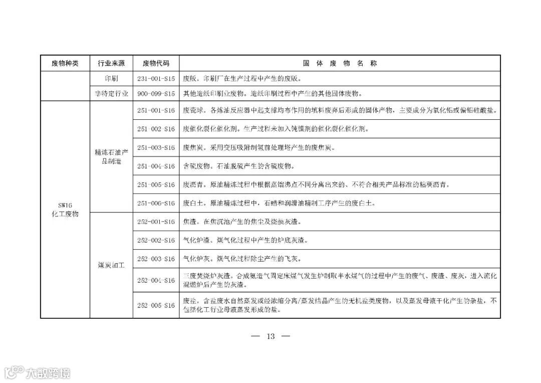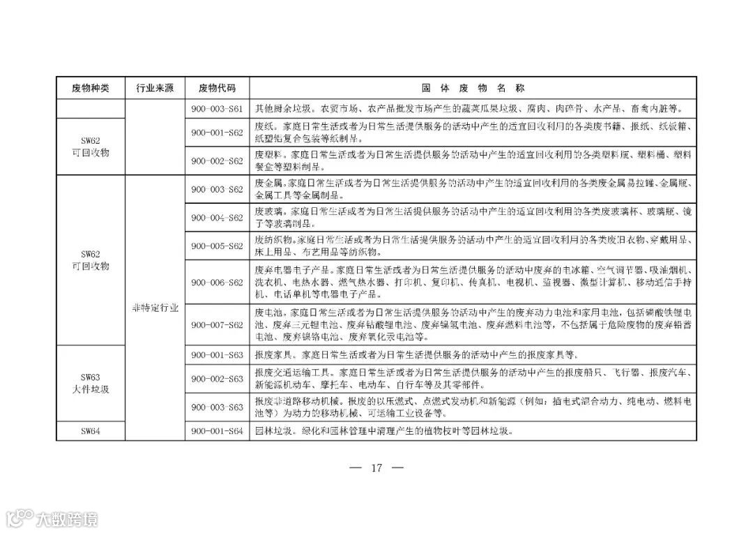 为推动落实《中华人民共和国固体废物污染环境防治法》关于固体废物转移管理、信息公开和工业固体废物管理台账、排污许可、环境统计等要求,提升固体废物管理规范化、精细化、信息化水平,生态环境部制定了《固体废物分类与代码目录》。现予以发布,自发布之日起施行。👇