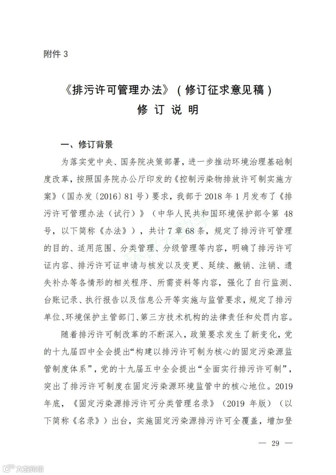 3.《排污许可管理办法》(修订征求意见稿)修订说明
