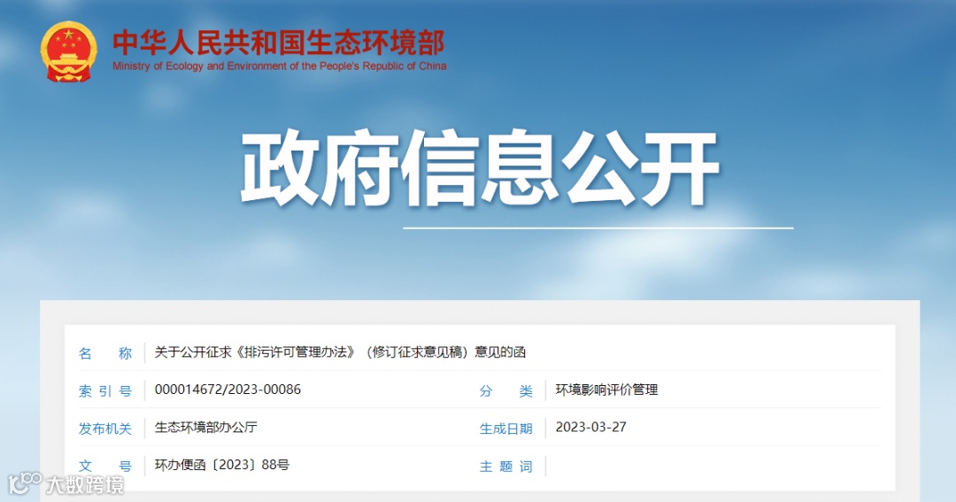 为贯彻落实《排污许可管理条例》《关于加强排污许可执法监管的指导意见》(环执法〔2022〕23号),推动全面实行排污许可制,我部组织修订《排污许可管理办法(试行)》,完成了修订征求意见稿。现公开征求意见(修订征求意见稿及修订说明可登录生态环境部网站http://www.mee.gov.cn/“意见征集”栏目检索查阅)。
