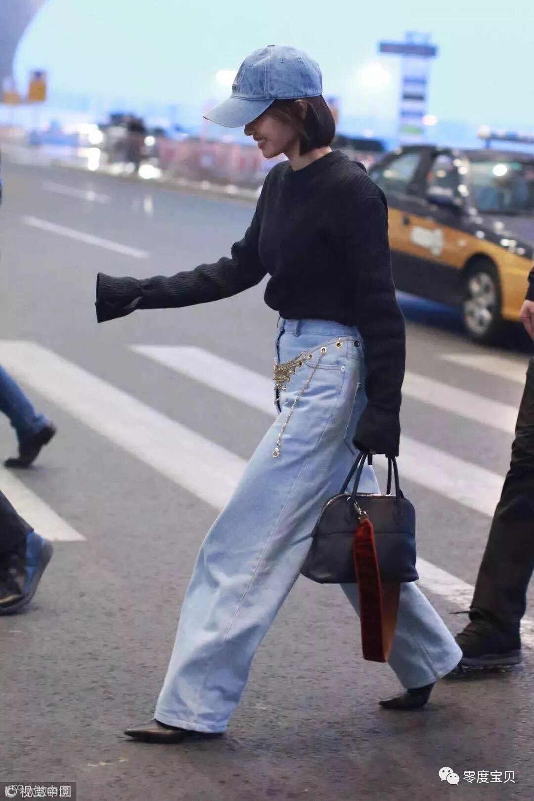蔡依林用超长袖子毛衣搭配高腰阔腿裤,丝毫看不出个子不高的痕迹。