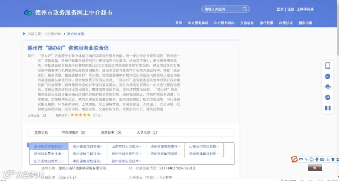 冯经理所称的中介联合体全称为德州市“德办好”咨询服务业联合体,于近日入驻德州政务服务网上中介超市,是我市首个涉审中介联合体。该中介联合体由一家中介机构牵头,联合全市范围内13家具有相应资质的中介机构共同成立,可提供建设、规划、国土、消防、人防等多个领域的涉审中介服务事项,共20余项。