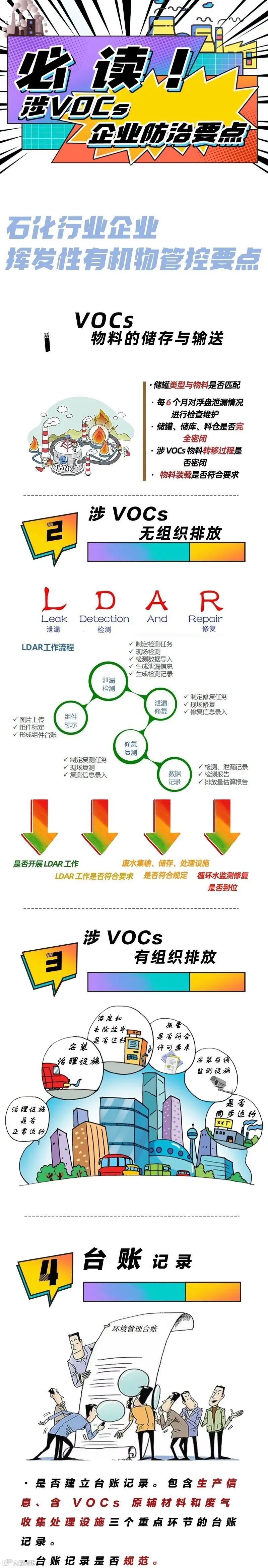 山东天洁项目管理咨询有限公司VOCs主要存在于企业原辅材料或产品中,大部分易燃易爆,部分属于有毒有害物质,加强VOCs治理是现阶段控制大气污染的有效途径,也是帮助企业实现节约资源、提高效益、减少安全隐患的有力手段。为提高相关行业企业挥发性有机物(VOCs)治理的科学性、针对性和有效性,整理出石化行业企业自查要点: