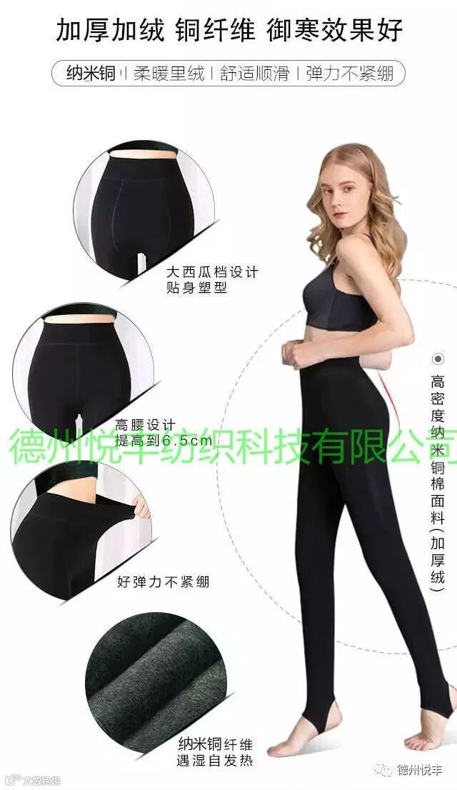 所谓科技改变生活!这次德州悦丰重磅推出新款黑科技产物——铜抗菌自发热打底裤。