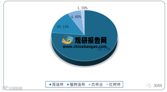 林业碳汇是指通过市场化手段参与林业资源交易,从而产生额外的经济价值,包括森林经营性碳汇和造林碳汇两个方面。根据数据显示,2020年我国再造林项目数量最多,占林业碳汇总数的51.77%;其次为植树造林,占林业碳汇总数的10.15%。
