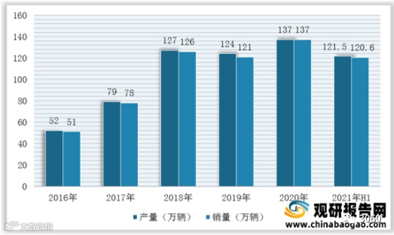 新能源汽车是指采用非常规的车用燃料作为动力来源(或使用常规的车用燃料、采用新型车载动力装置),综合车辆的动力控制和驱动方面的先进技术,形成的技术原理先进、具有新技术、新结构的汽车。根据数据显示,2020年我国新能源汽车产销均达137万辆,2021年上半年我国新能源汽车产销分别完成121.5万辆和120.6万辆。