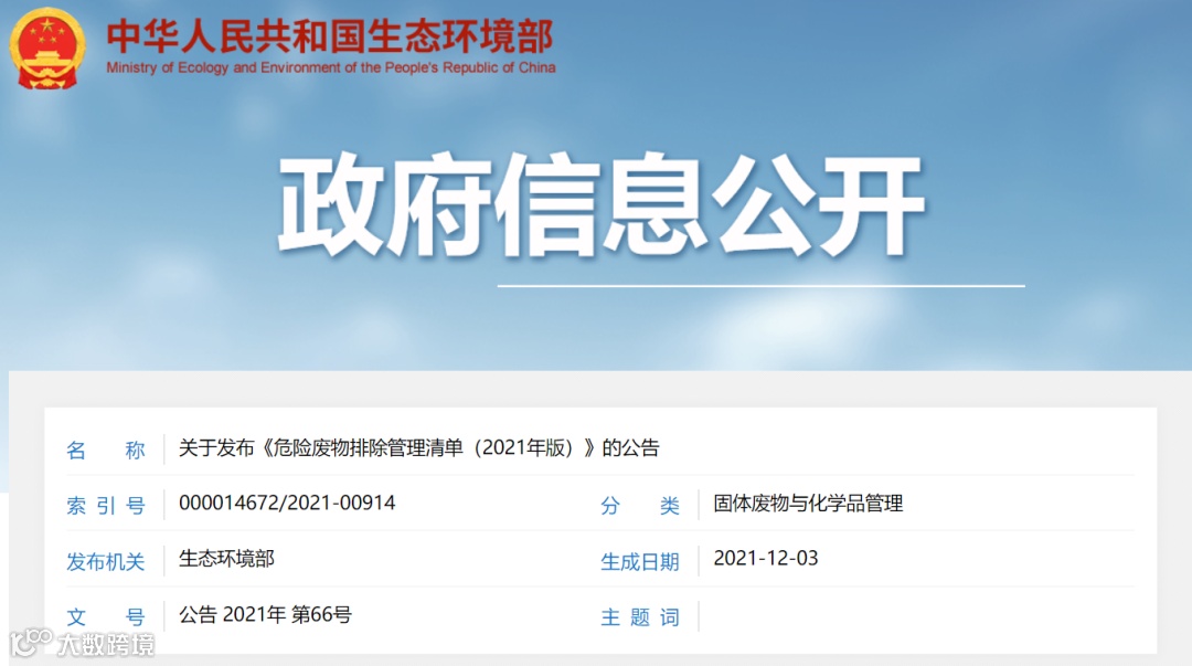 关于发布《危险废物排除管理清单(2021年版)》的公告