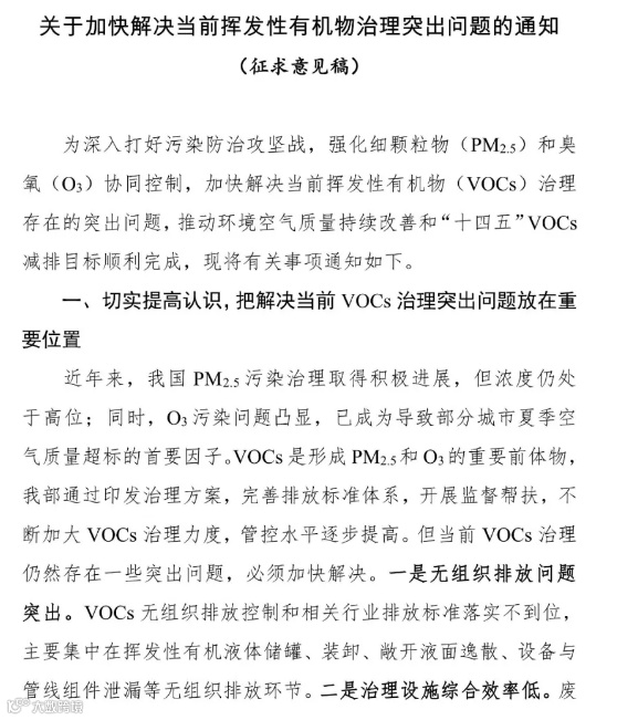 附件:关于加快解决当前挥发性有机物治理突出问题的通知(征求意见稿)