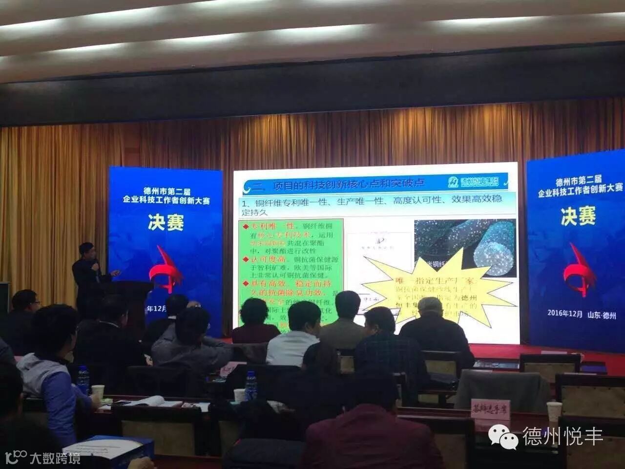 恒丰集团德州悦丰科技作为科技创新项目的参赛企业代表于11月30日到2日参加了德州市第二届科技工作者科技创新决赛,此次决赛由市科协、市经信委、市财政局、市人社局主办,主题为“创新、协同、发展”,皆在展示我市企业今年以来科技创新的最新成果。大赛邀请了省内重点院校的教授以及行业领军专家担任评委,并进行现场宣讲、复审、决赛答辩的环节评比。