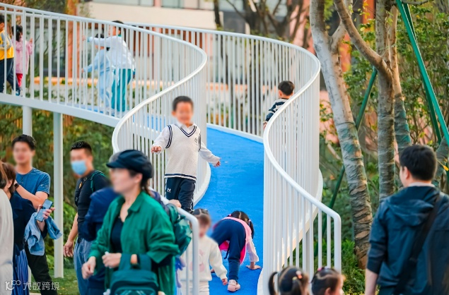 在儿童游乐区,孩子开启探索自然的脚步,追逐笑闹,童真烂漫;在老年康养空间,长者闲聚于此,运动休闲,让日常更安心;在喷泉水景,听流水淙淙,融合着孩子们的欢声笑语,奏启一曲归家的幸福乐章。