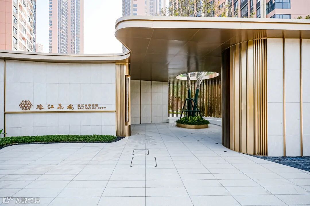 首度映入眼帘的,即是珠江花城的归家门庭,雅致香槟金的色调,在阳光中熠熠生辉。光影透过格栅,诗意洒落,高大乔木静静伫立,仿若为每一位家人守候。在珠江花城,你不是过客,而是归人。