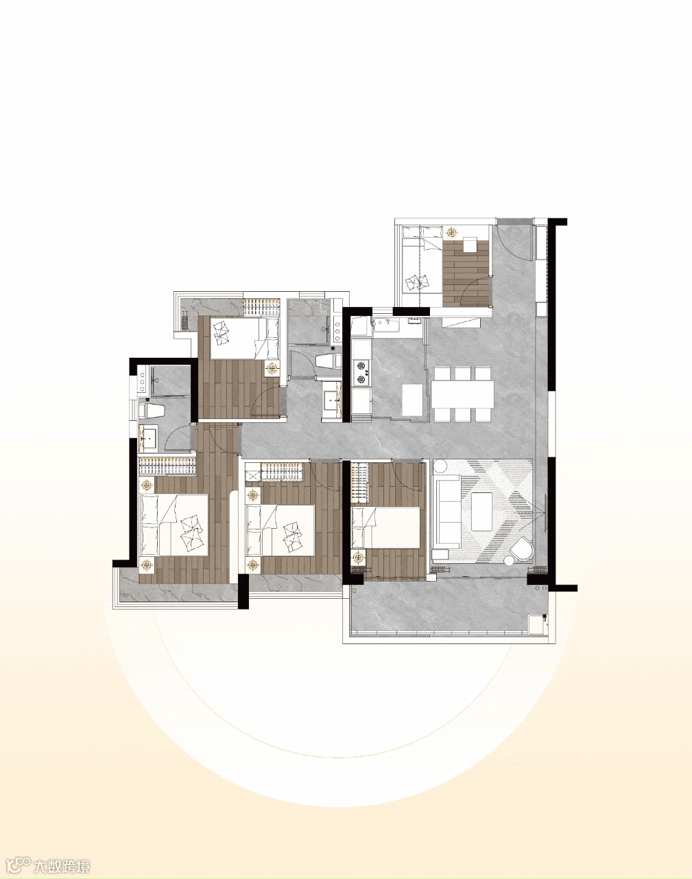 阳光是自然的馈赠,也是健康的财富。西关都荟的121㎡户型4开间朝南,客厅、主卧、次卧均可享受阔绰的朝南面,南北通透的布局,冬日暖阳,夏日通风,健康舒适,让光线成为生活的一部分,光影之间,皆是全家人的奢适时光。