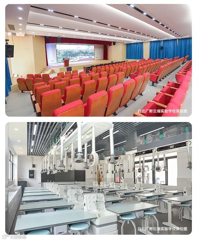 白云广附云湖实验学校是一所48班公办九年一贯制中小学,其中小学30个班,中学18个班,项目总用地面积约4.1万㎡,总建筑面积约2.5万㎡,配套有图书馆、报告厅、多功能课室、舞蹈室、科学实验室、食堂、400米跑道田径场等。