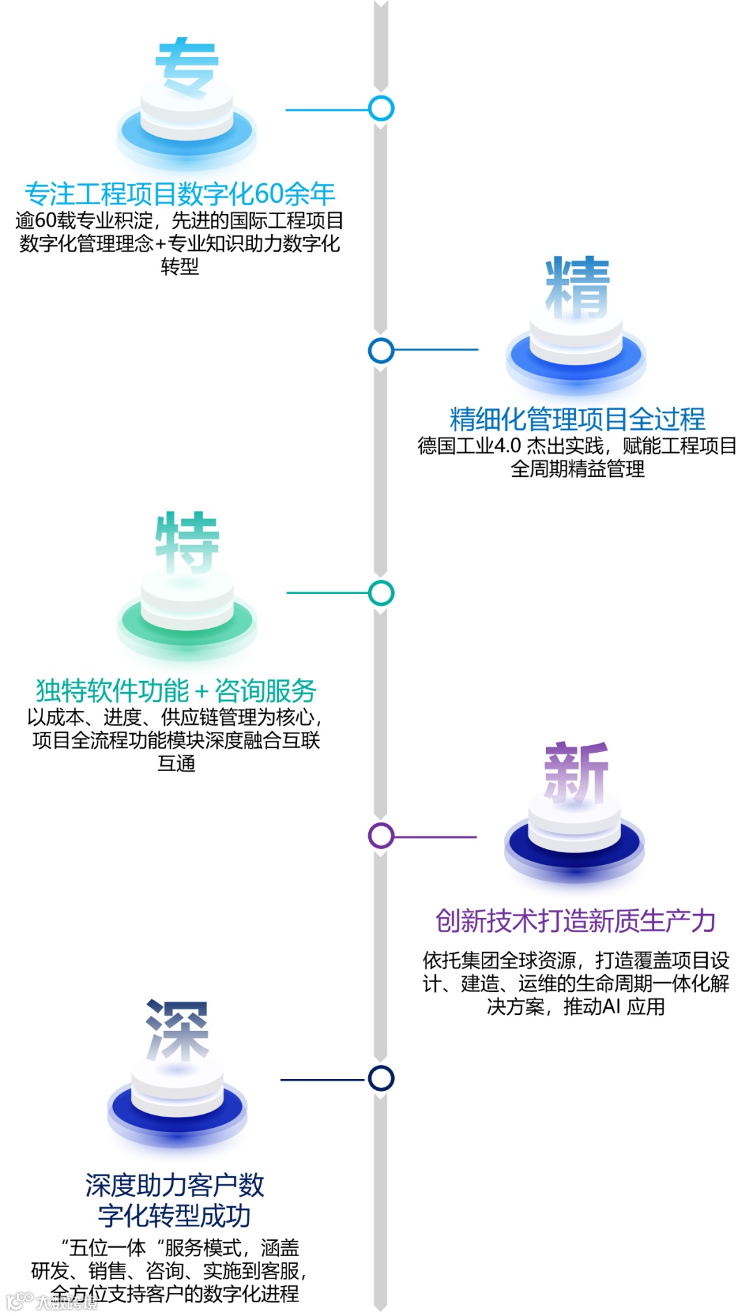 RIB集团国际化旗舰产品 - RIB 4.0 工程建造项目管理一体化平台,融合先进的项目全过程管理技术和60多年的全球工程数字化经验,以专、精、特、新、深,核心优势赋能EPC工程公司及业主投资建设方实现工程项目全过程数字化管理,精确管控成本、优化进度及供应链管理、提高全生命周期协同效率,满足国际市场复杂多变的应用场景,实现更高效和可持续的建造。