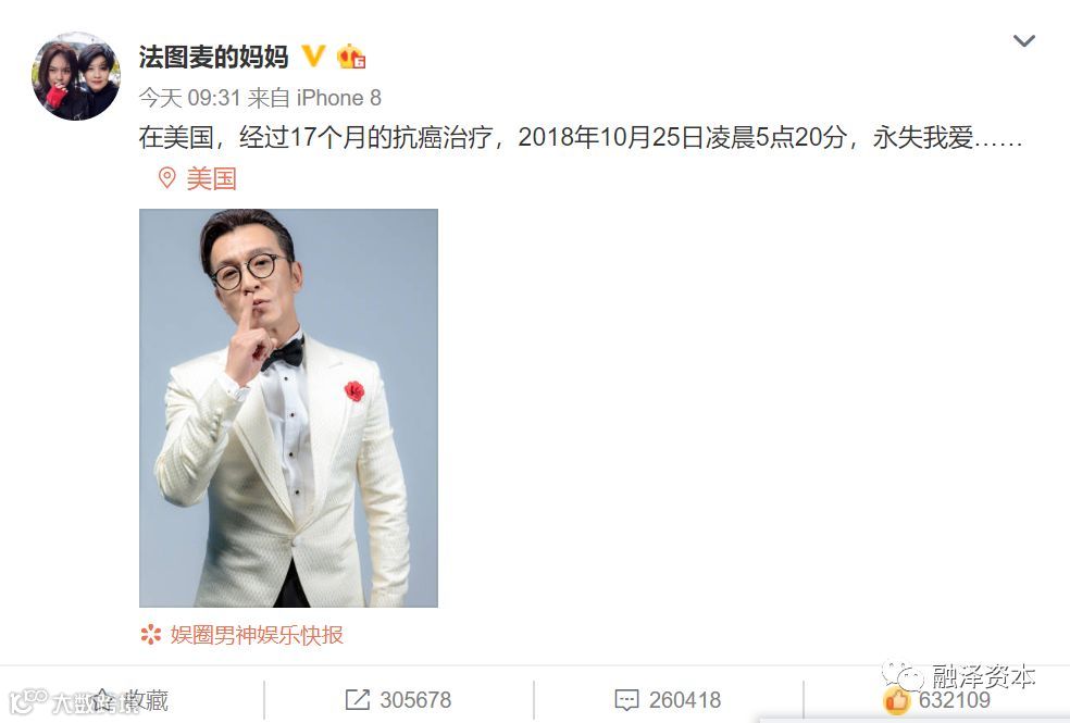李咏的夫人发布了他的死讯。