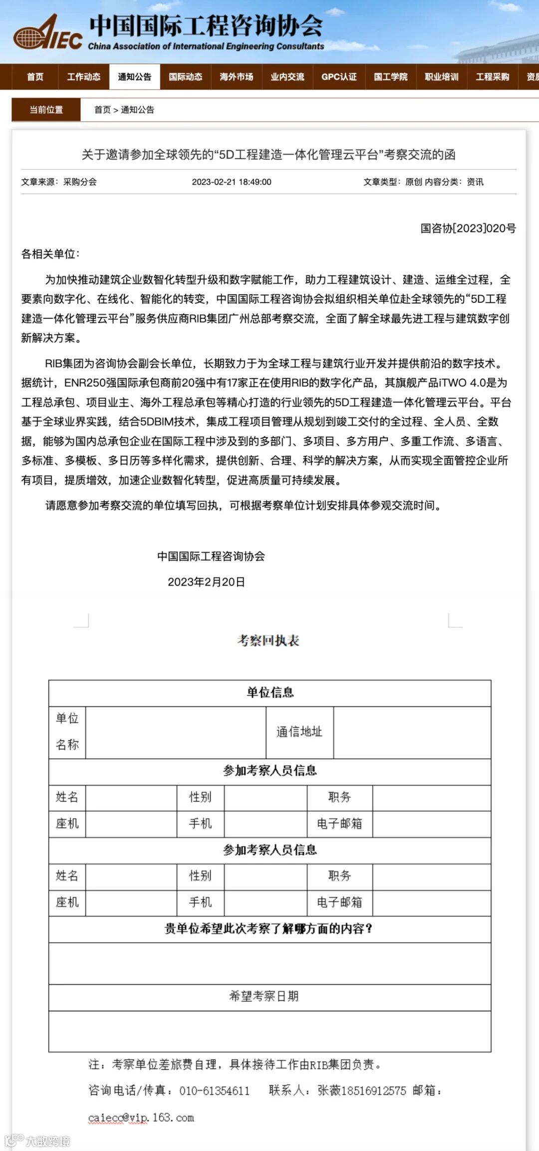 为加快推动建筑企业数智化转型升级和数字赋能工作,助力工程建筑设计、建造、运维全过程,全要素向数字化、在线化、智能化的转变,中国国际工程咨询协会拟组织相关单位赴全球领先的“5D工程建造一体化管理云平台”服务供应商RIB集团广州总部考察交流,全面了解全球最先进工程与建筑数字创新解决方案。
