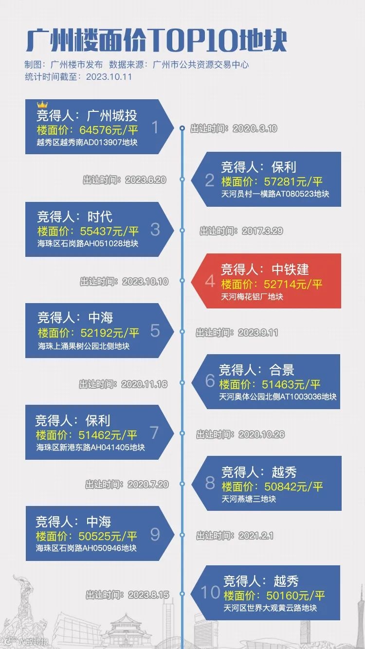 10月10日,备受瞩目的梅花铝厂地块开拍,吸引了11家知名房企参与竞拍,经过40轮拉锯,价格封顶进入摇号环节,最终被中铁建竞得。折合楼面价52714元/㎡,跻身广州楼面价TOP4!至此在广州楼面价TOP10地块中,天河独占5席,价值高地凸显无疑!