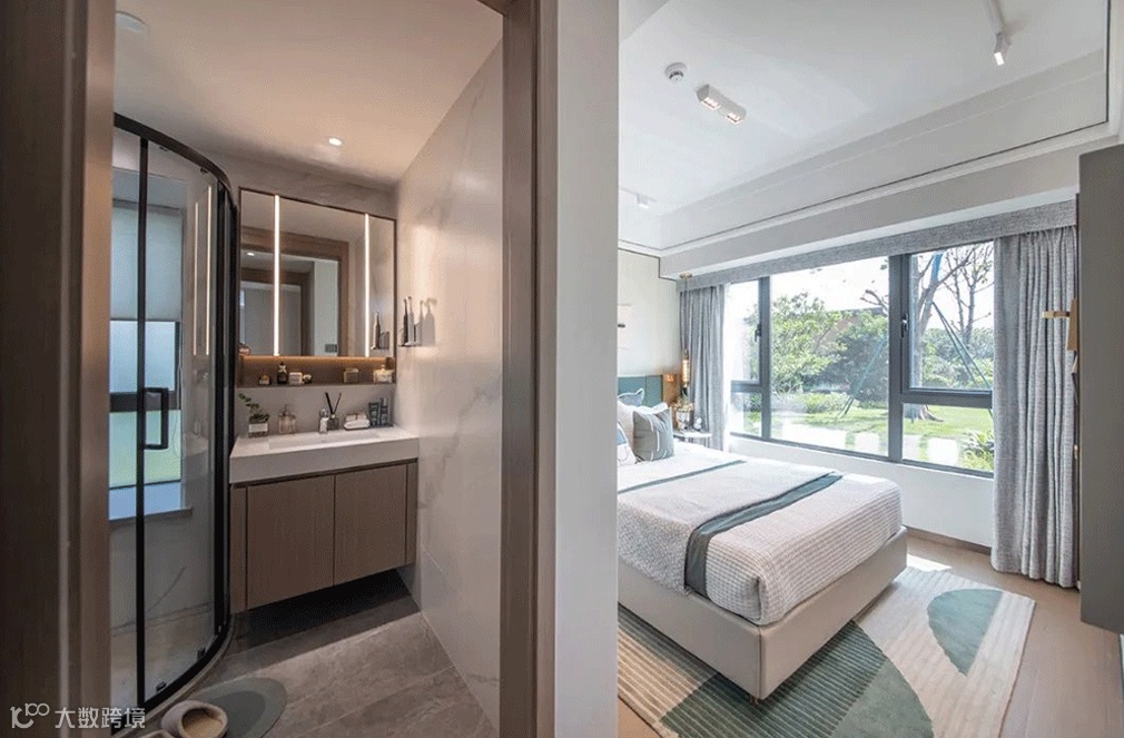 约14㎡主卧套房打破传统卧室的单一设计,集起居、衣帽、主卫等于一体,门内是甜蜜二人世界,门外是幸福大家庭。