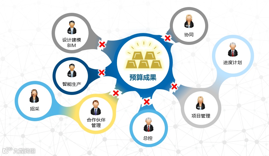 通过把预算数据应用于全流程,提升跨部门协同合作能力和项目管理水平,更好地实现预算信息共享。预算和组价结果与成本计划、现场采购、协调施工等过程产生联动,实时汇集数据,形成知识流通,助企业总览全局。