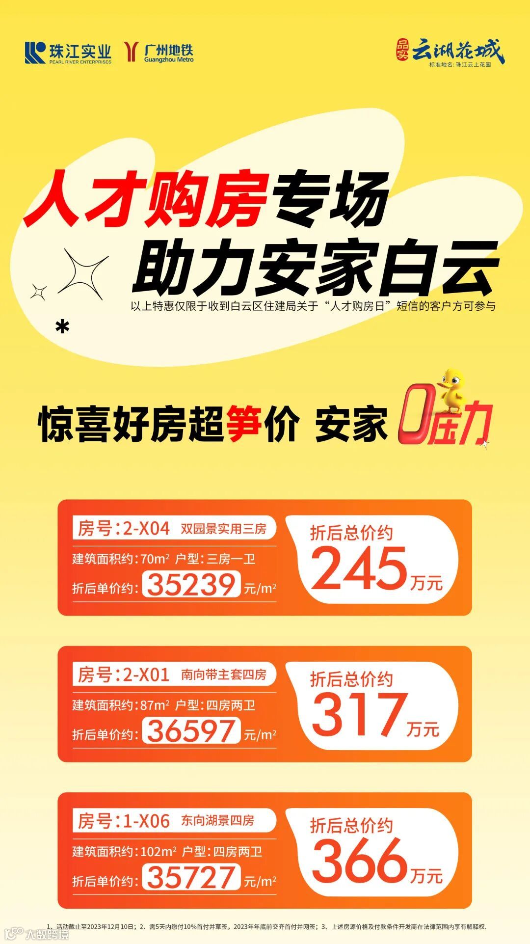 云湖花城“0”压力购房节。本周人才购房专场敬献特惠房源,助力安家白云,欲购从速。