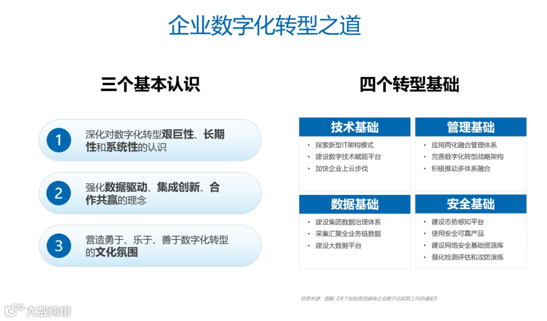 企业数字化转型同时也需要有四个转型基础: