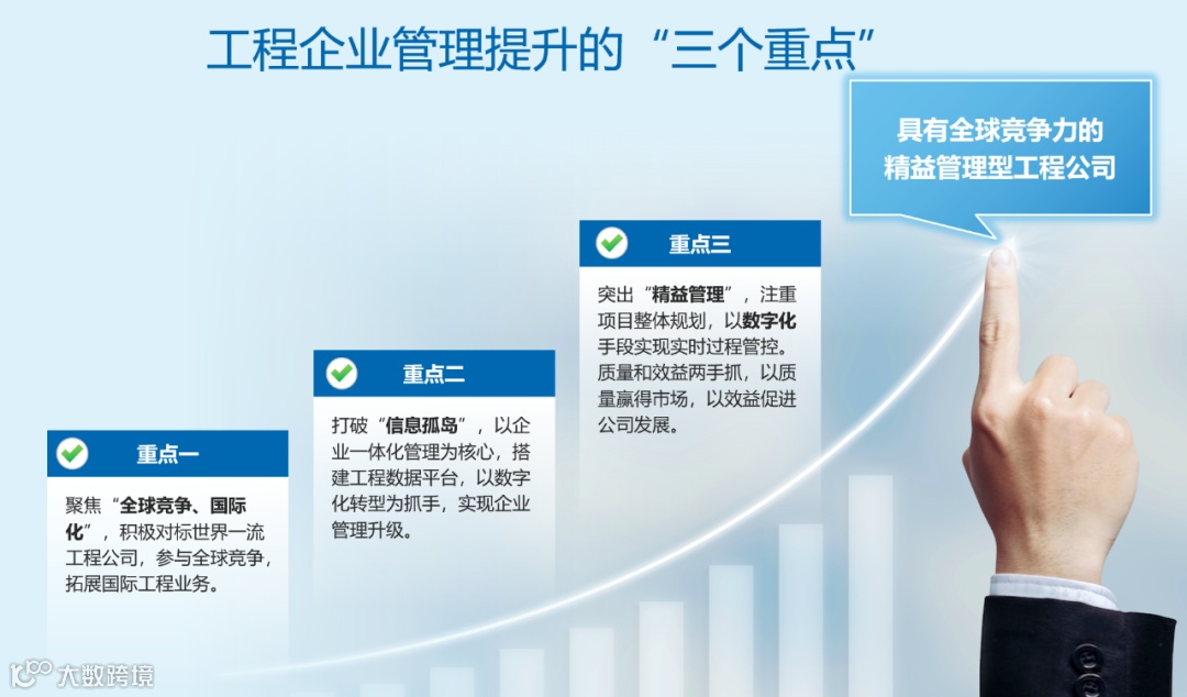 工程企业可以通过“三个重点”来实现管理提升,从而最终成为具有全球竞争力的精益管理型工程公司: