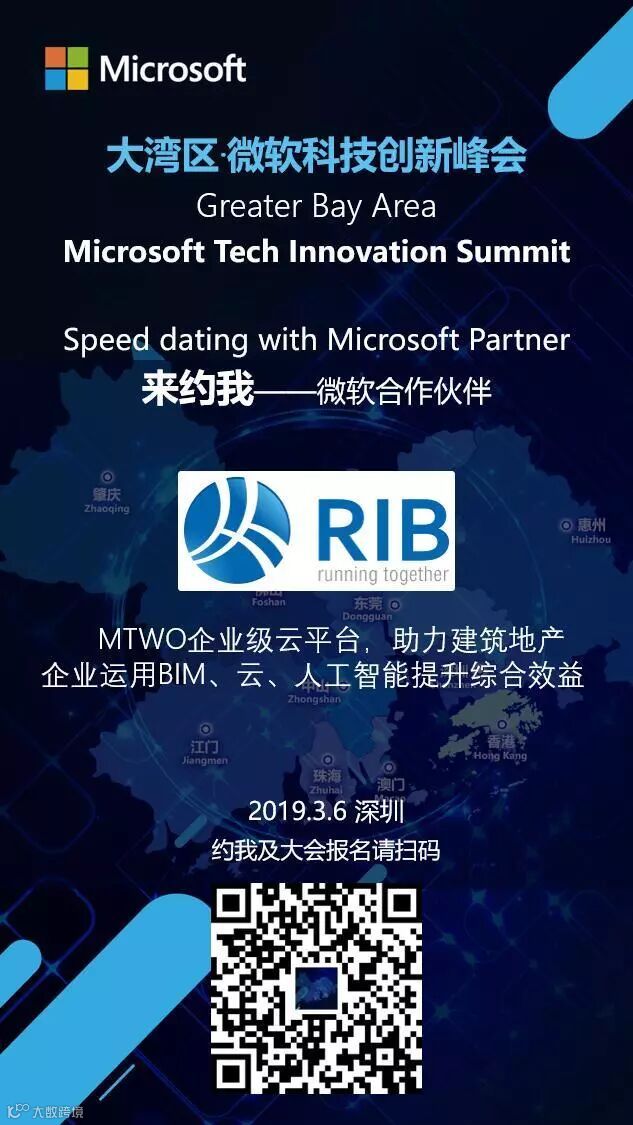 面对数字化转型新态势,有研究规划指出,大湾区相关地带将成为未来智慧城市发展及房地产升级的主战场。作为推动全球建筑及房地产企业数字化转型的最佳技术合作伙伴,RIB荣幸受邀将参加由微软举办的大湾区·微软科技创新峰会。