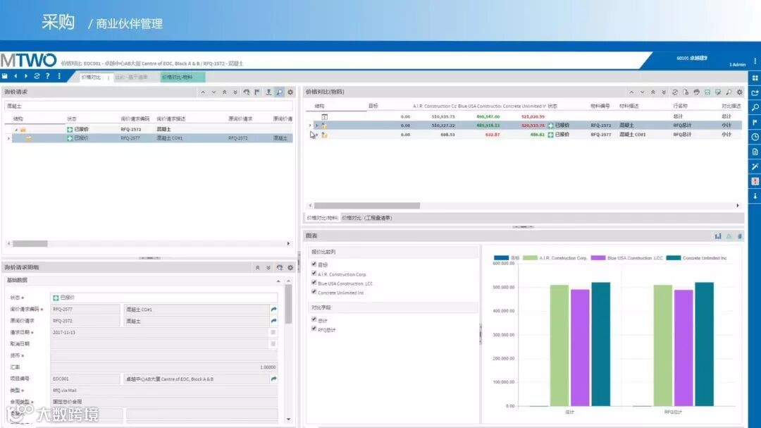 除此之外,MTWO还拥有基于计价结果的全周期招投标管理、交货进度记录、发票管理以及商业伙伴评估等多个模块。