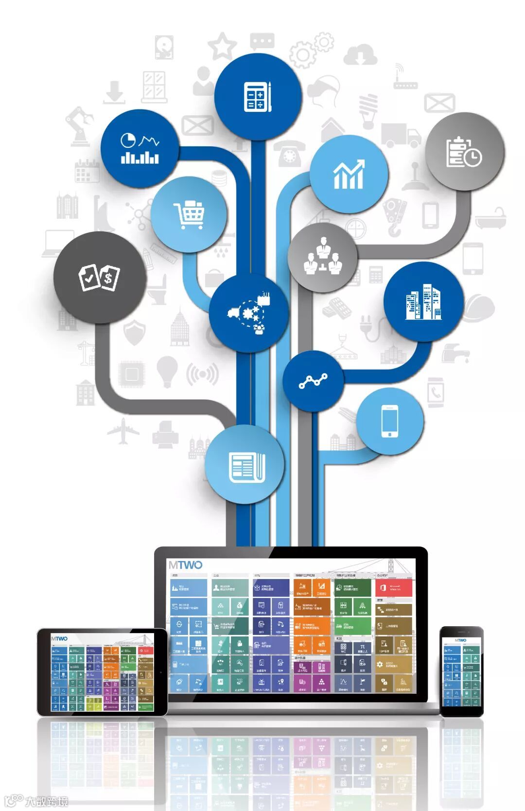 作为建筑最强大脑,企业级云平台MTWO在一个平台上实现了互联互通,打通项目全生命流程的“任督二脉”,拥有超越想象的智能数据储存和分析能力,过百个功能模块连接起来的“神经系统”,满足企业和项目所有需求。